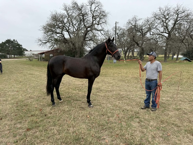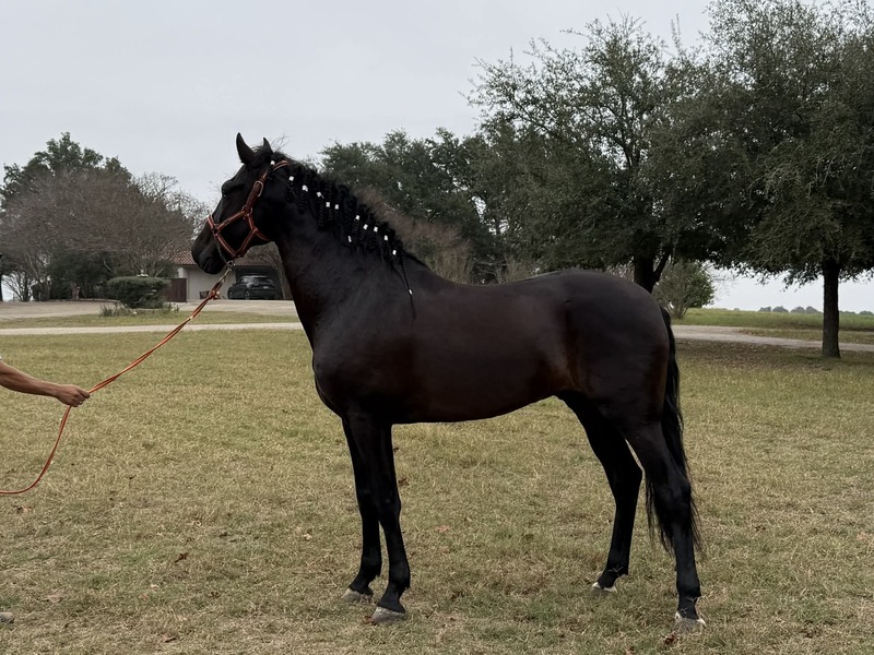 Black stallion with a great pedigree, halter and saddle trained. His pedigree includes 5 multi ANCCE stamp horses. Suitable for pleasure, performance or show. Great ground manners, loads and travels well. Does laterals, starting piaffe and passage. Could be gelded if buyer desires but is a quiet stallion. We have 3 recent videos on you tube: 2 different trainers riding him