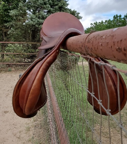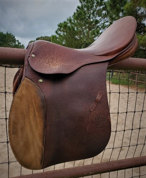 This saddle was used by our teen daughter medium build for jumping cross country and general riding on a medium build quarter horse. It is well made and in good condition. Located near Austin, Texas.